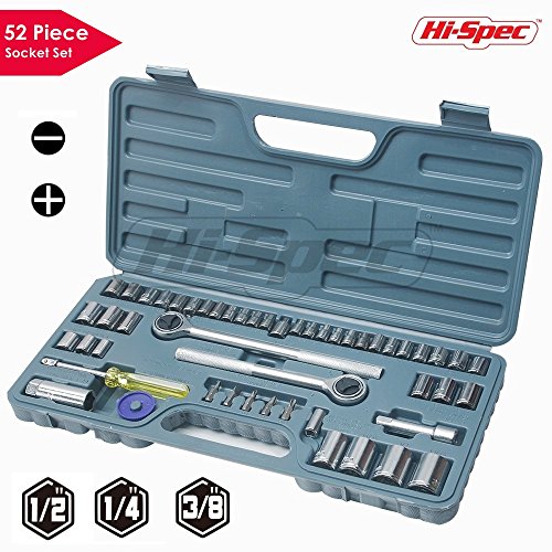 Hi-Spec 52 Piece SAE & Metric Socket Set including 1/2" and 3/8" Reversible Ratchet Handle & 1/4" Socket Drive Spinner Handle, all in Sturdy Blow Mold Case - Thank you for visiting this site. This review will we made about "Hi-Spec 52 Piece SAE & Metric Socket Set including 1/2" and 3/8" Reversible Ratchet Handle & 1/4" Socket Drive Spinner Handle, all in Sturdy Blow Mold Case", if you are currently looking for the article on it, it means you need to read this review now.